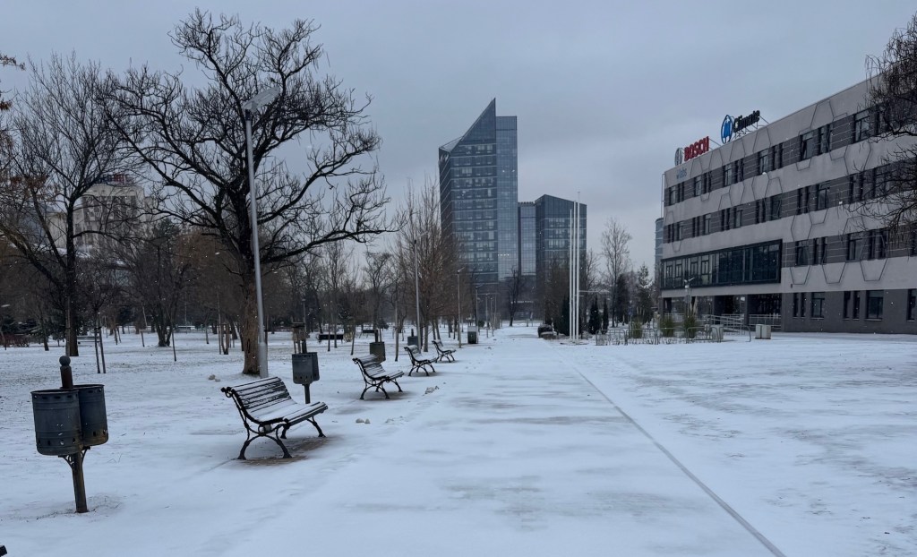 Climate change has brought softer winters to Sofia. It is the first time we’ve had two days with snow this season, and the snow barely hides the grass. It was, however, very windy, so the few snowflakes and the modest -2°C felt quite unpleasant. We could call it a snowstorm, in the absence of a real one.