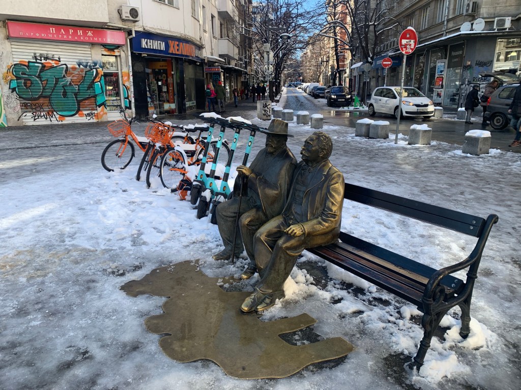 I managed to take a photo before the square was cleaned from the snow. I love this place and the monument. It is engaging and with a very clear purpose. You sit, take a selfie, move on. Maybe a bit better without ice.