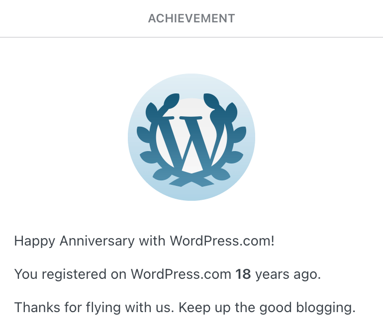 Thanks! That’s 18 years with WordPress.com, my first WordPress blog was self-hosted and from 2004 π