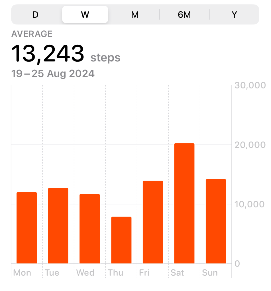 Why does it feel like it is too much? An average of 13K means about 2h 10 min/day. The day is 24h. This leaves 21h 50min of inactivity. The human body was not made to be physically inactive for 22 hours per day. I have no answer yet. I’ll keep walking meanwhile.