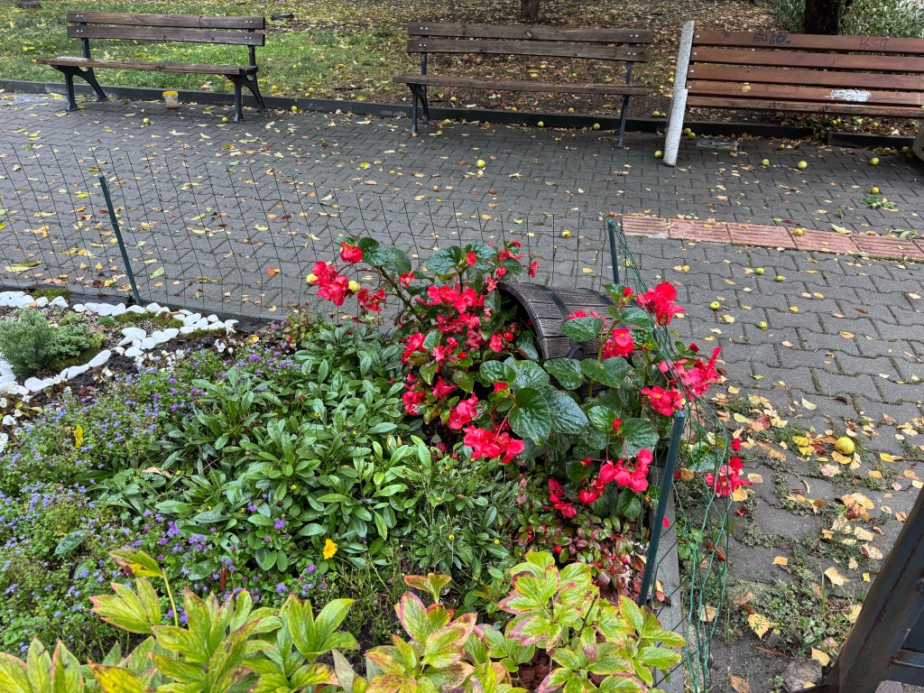 The red flower is Begonia, taken near DCC-22, Sofia. Kudos to however keeps this tiny garden.