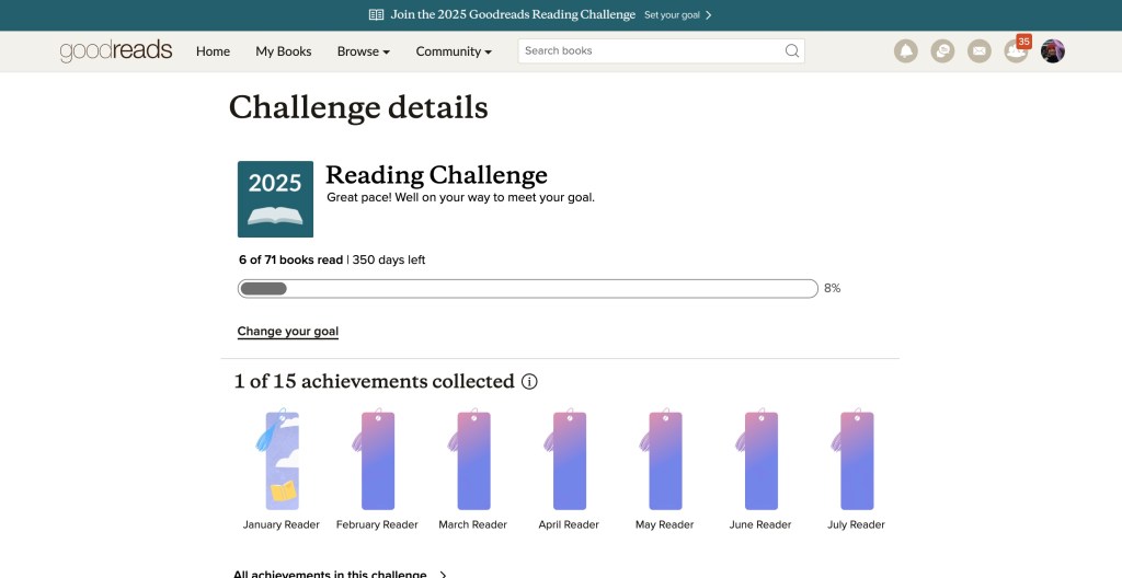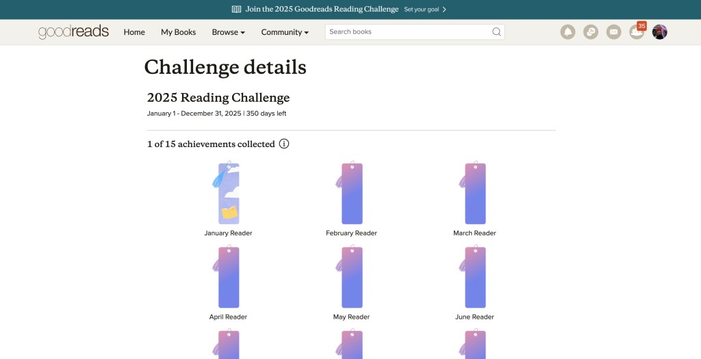 - Not seeing the friends’ challenges is not a problem if your Goodreads account has no friends who do the challenge or you don’t do it yourself. In that case other problems appear more prominent, like can we have a single address for the reading challenge? What should it be?
