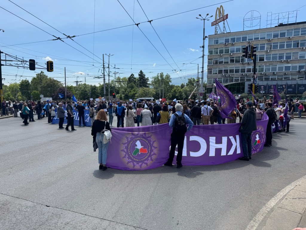 People are protesting. They want more money. I had the rare and not quite wanted opportunity to walk in the middle of the usually very busy road, while the intersection was blocked.