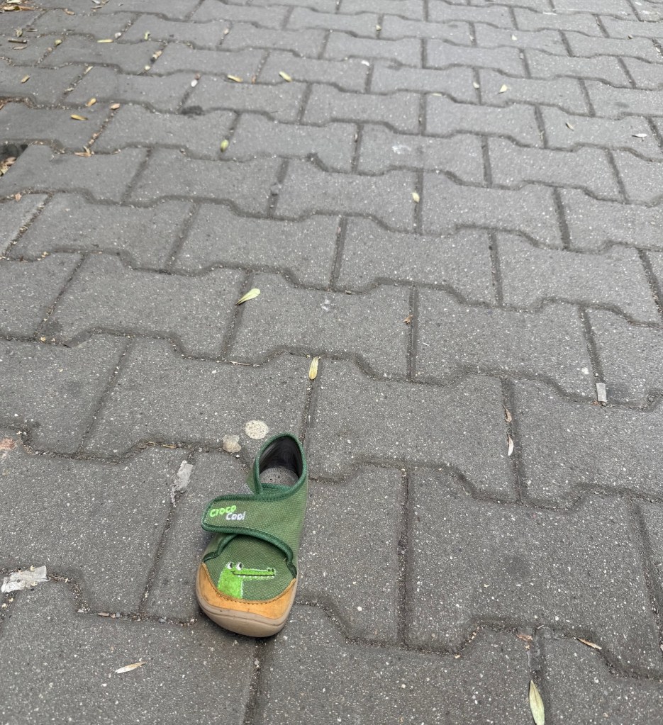 I’ve been the parent searching for the tiny shoe in the past. I think the best strategy when seeing a tiny shoe is to not touch it, it increases the chance that it’s found compared to if you put it on a visible place. I’ve managed to find the lost shoe several hours after it was lost but this one time a Good Samaritan put it on top of an anti-parking bollard – I had to walk back and forth to the store two or three times because I didn’t expect it to be there.