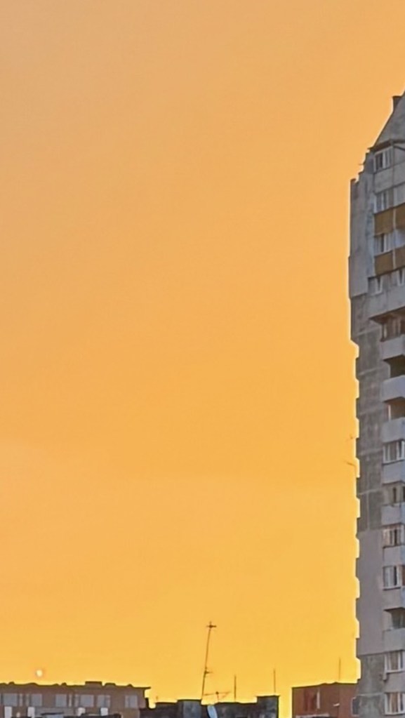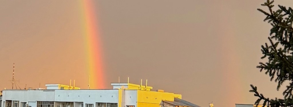 The rainbow and thats such a beautiful color sky… its all yellow, little bit unusual.