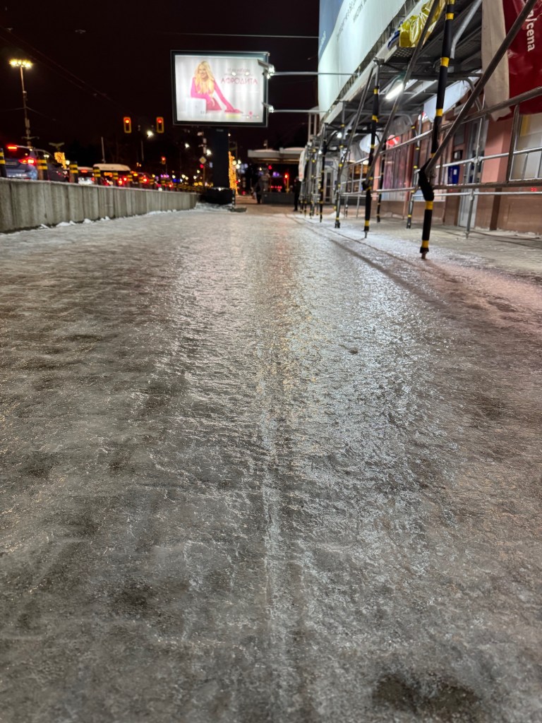 The five snowflakes that fell over the city yesterday quickly turned into a thin layer of ice. This is the second most unpleasant regular event in the city, only dwarfed by the annual snow melting. Unfortunately, when the snow is not much, people tend to not clean it.