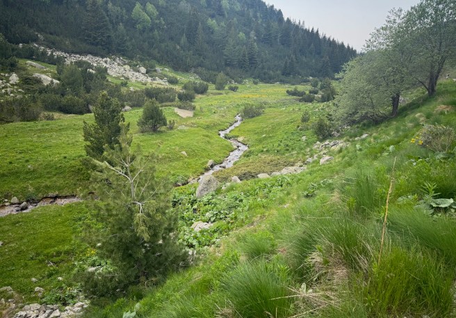 The area is full of tiny creeks that all go to this small river, called Bistritza. I’d say it was moist. Lots of berries everywhere, still green, but once they’re ripe, the path will become even more challenging 😃